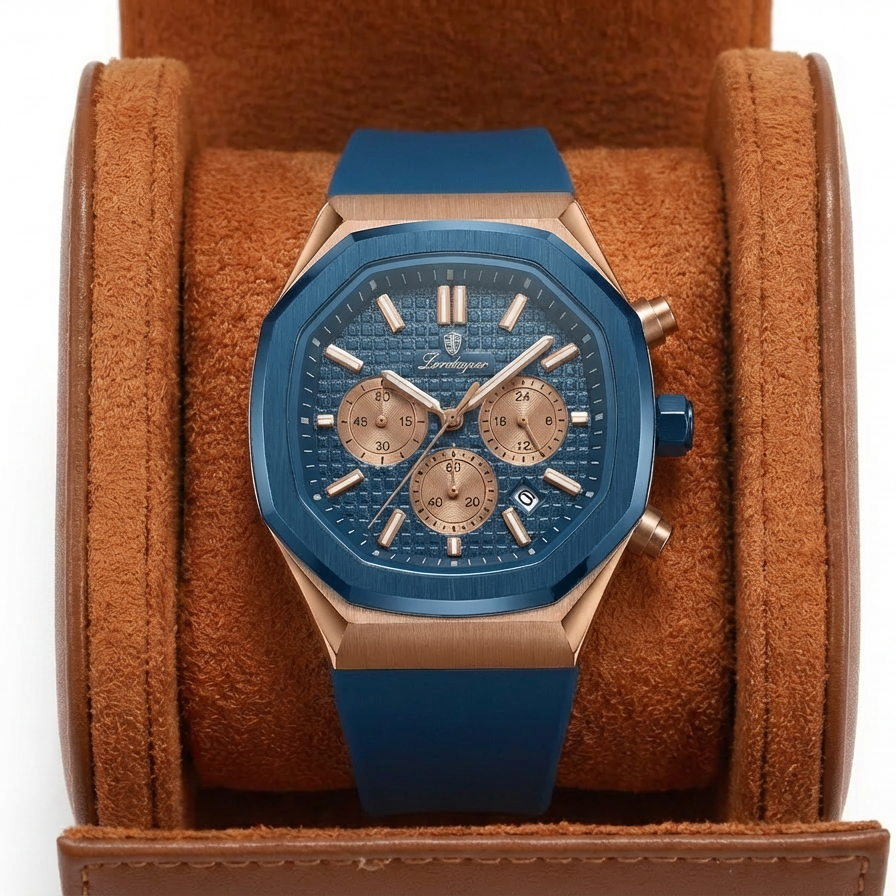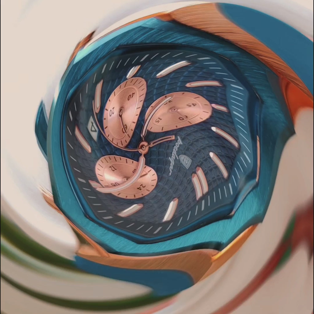 Inspirado na engenharia alemã contemporânea, o Kronwerk nasce da união entre precisão técnica, força estrutural e design industrial sofisticado. Seu formato geométrico marcante, com caixa octogonal e linhas angulares, remete aos complexos mecânicos de Stuttgart e às fábricas de alta performance que definem o padrão alemão de excelência.