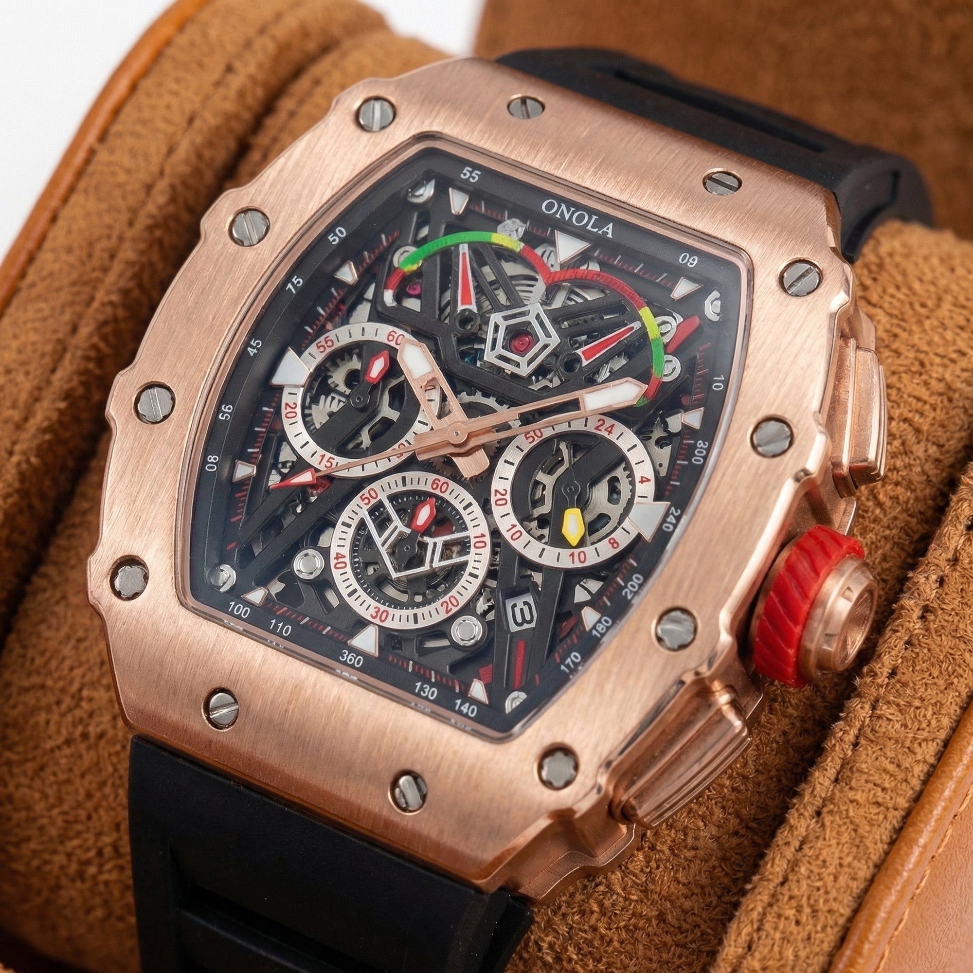 - Diâmetro do mostrador: 44 mm para visual robusto.